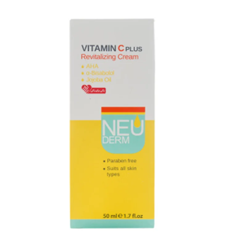 کرم ویتامین سی نئودرم با فرمولاسیون قوی و بهره مندی از ترکیباتی همچون AHA و ویتامین C از پوست لایه برداری نموده و باعث روشن شدن آن میشود. کرم ویتامین سی پلاس نئودرم موجب تحریک تولید کلاژن و الاستین برای بازسازی سلولی میشود و اثر رادیکال های آزاد را خنثی مینماید. لک های پیری و ناشی از نور مستقیم خورشید توسط کرم نئودرم ویتامین سی بهبود یافته و از پیری زودرس پیشگیری مینماید. کرم ویتامین سی نئودرم فاقد پارابن و مواد نگهدارنده مضر میباشد و برای انواع پوست مناسب است.